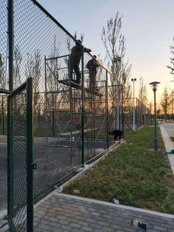 籃球場(chǎng)護(hù)欄網(wǎng)的套管裝置,就是立桿的上部和下部兩頭焊接出10公分左右的套管,用來插接橫管。固定球場(chǎng)護(hù)欄網(wǎng)的立柱,立柱的裝置方法有底盤,有預(yù)埋的,預(yù)埋的需求現(xiàn)場(chǎng)澆筑混凝土,底盤的裝置方法要求地上有硬化硬化厚度要在10公分。
