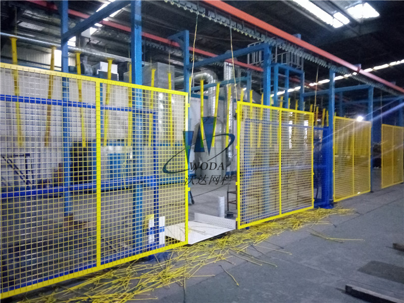 車間隔離欄(車間圍欄網)顏色可選白色、黃色、綠色、藍色、紅色浸塑涂塑防腐處理、車間防護網一般采用框架式結構。車間隔離欄網門有對開門和側開門兩種、裝有滑輪方便開關。