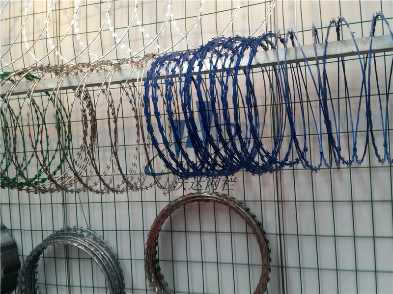 圍墻刀刺網圍欄按照安裝方法不同可分為:(蛇腹式)螺旋式刀片刺繩,直線型刀片刺繩,平板式刀片刺繩,刀片刺繩焊接網等。片刺繩按照安裝方法不同可分為:(蛇腹式)螺旋式刀片刺繩,直線型刀片刺繩,平板式刀片刺繩,刀片刺繩焊接網等。