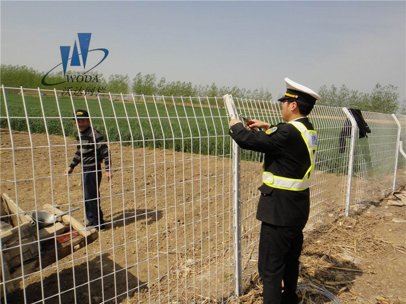 高速公路護欄網在出廠前已按訂貨要求進行系列裝配,產品運抵施工現場后僅需將各立柱的鋼襯部位插入穩定底座,按使用用部門要求直線延長布設。