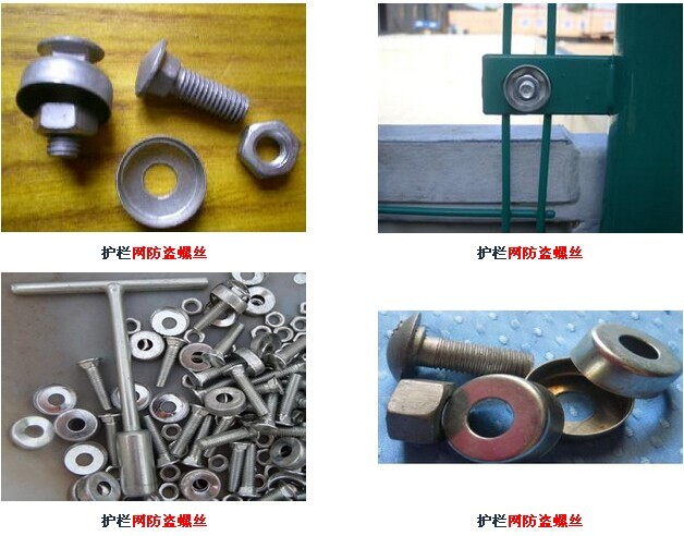 雙邊絲護欄網安裝螺絲配件螺母在應用中和普通螺絲螺母一樣不受限制,因此其應用領域十分廣泛,如:電力設施、鐵路設施、高速公路的設施、油田設施、城市亮化路燈設施,燈汽車輪胎及公用健身器材等等。只要是用螺絲螺母來固定的物品,為防止被非本意的拆卸都可應用此項技術及產品,防止被盜竊而丟失,從而加強了公用設施和設備的管理與防護。產品性能優越,受到社會各行業的廣泛關注與好評。